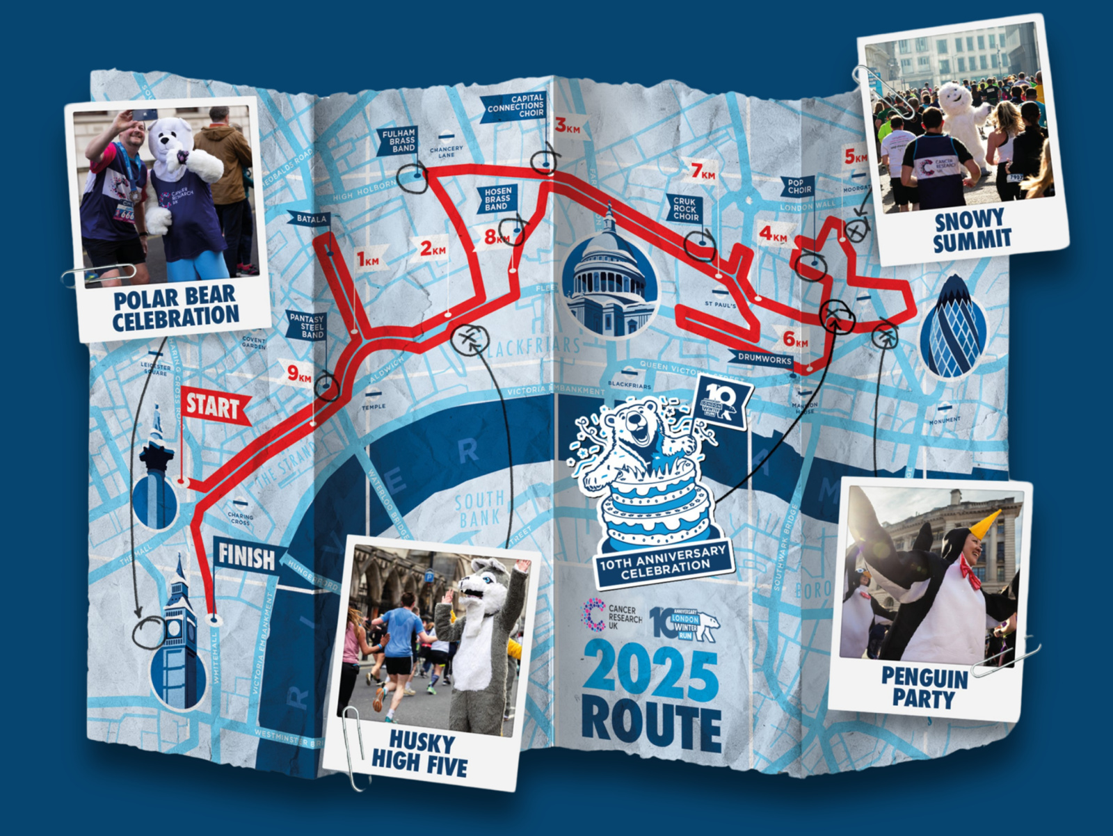 We love a good custom map for an event, and the London Winter Run has just one – and despite it pretending to be an image of a printed map, it is nice and clear and very readable. You know exactly where you’ll be running if you talk part on the London Winter Run 10K race. This is the 2025 route map but the 2026 one will, we presume, be a similar tour of central London landmarks and views.